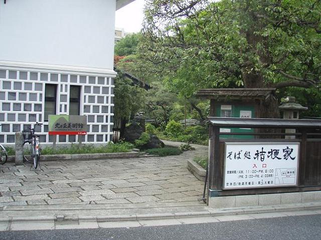 手前に美術館、石畳を抜けて、奥に行くと、そば処 桔梗家 、陶芸教室「飯鋼山陶房」があります。